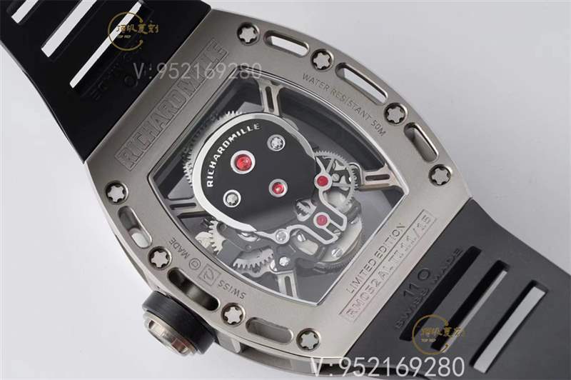 2,深度研究原廠RM052的表殼材質,采用航空鈦金屬重量比普通鈦殼表輕30%。表殼鎖畢結構高度還原正品水準,
